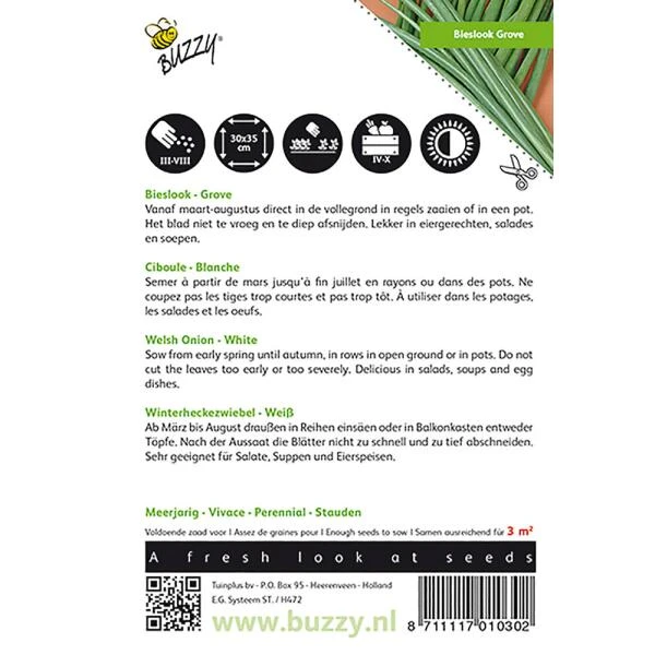 Er zijn meer bekende allium soorten, zoals de grove bieslook (allium fistulosum artikel 01030), chinese bieslook-knoflook (allium tuberosum artikel 01028) en natuurlijk de ui (allium cepa) en prei (allium porrum). Bieslook heeft een fijne, delicate smaak. Bieslookstengels zijn lang, smal engrasachtig. Als ze niet worden afgeknipt krijgen ze in het tweede jaarprachtige violet-blauwe bloemen. Daarom worden ze ook vaak als borderplanten toegepast. Bieslook wordt meestal toegepast in gerechten.