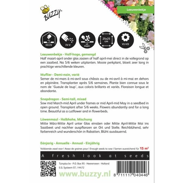 Antirrhinum majus nanum is een zaadmengsel van hoge leeuwenbekken. Dit is het beste eenjarige mengsel voor leeuwenbekken als snijbloem.
